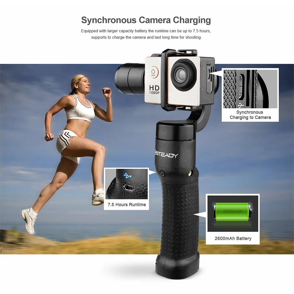 BEST 3 Axis Outdoor Shockproof Travel Rechargeable Action Camera Accessories Anti Shake Handheld Gimbal