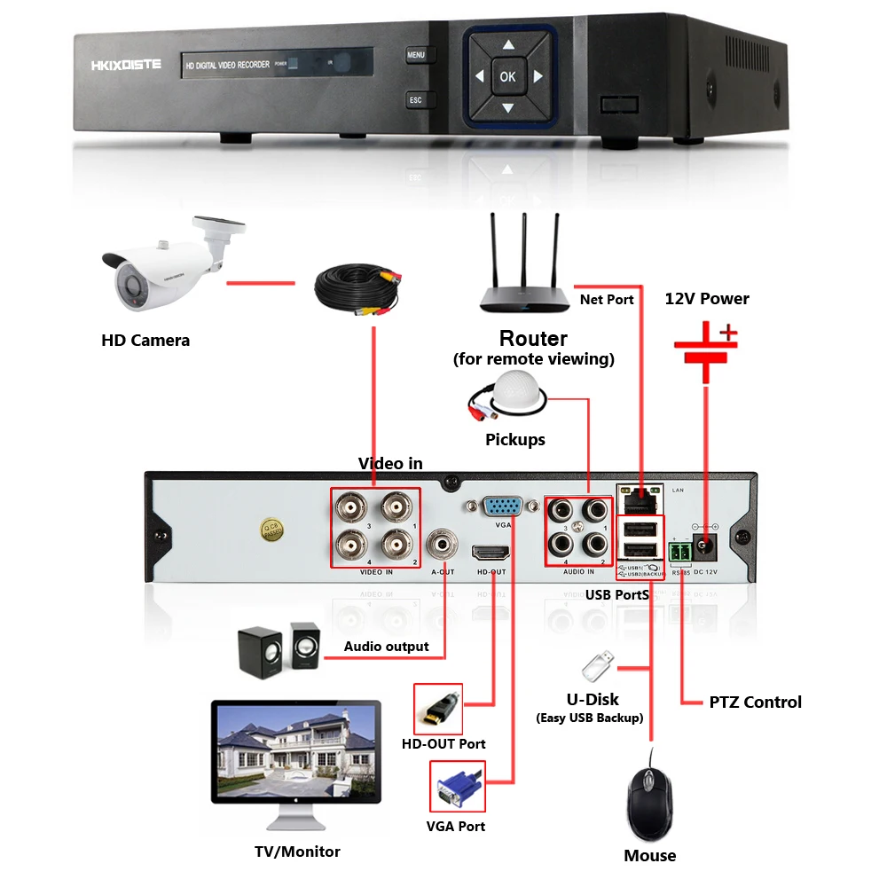 BEST QUALITY 4Ch Full HD 1080P AHD-H Real time 4 Channel CCTV 720P AHD DVR AHD-NH Hybrid DVR NVR 5in1 Video Reco