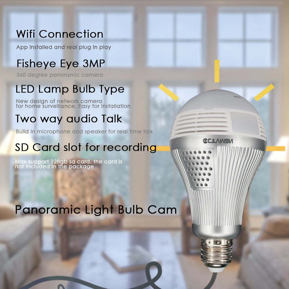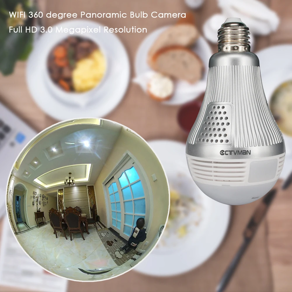 HIGH QUALITY CTVMAN 3mp 360 Panoramic Bulb Light Led Lamp Camera Wifi with 64gb TF Card Fisheye Full View Survei