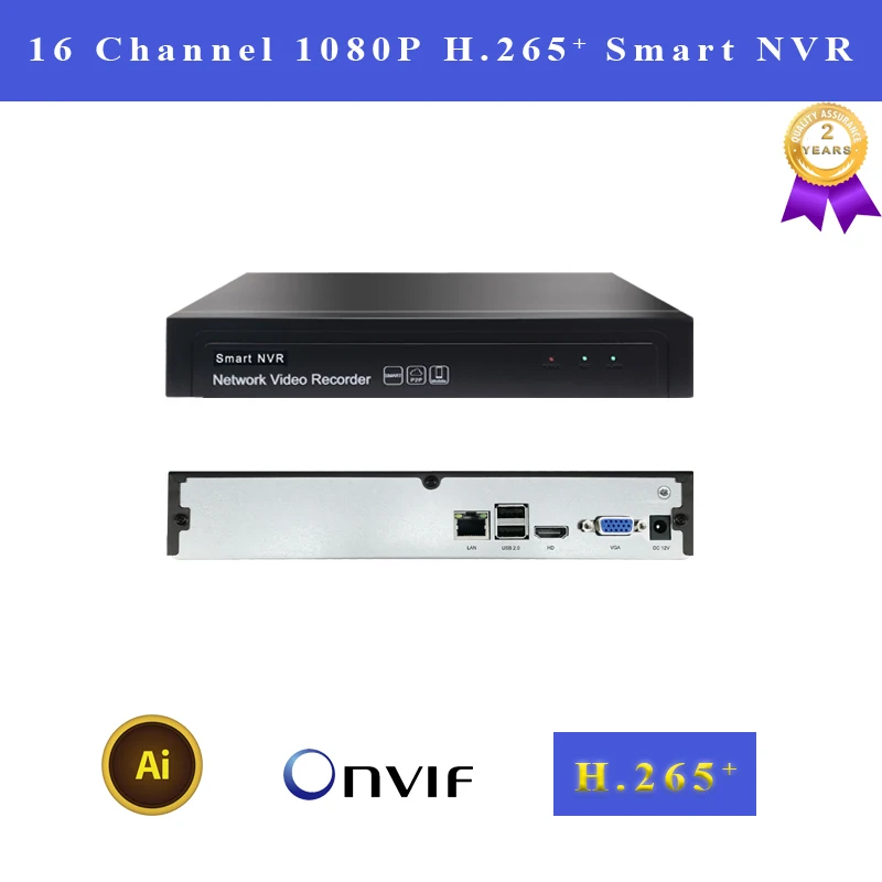 NVR 16 CH 1080P CCTV NVR Supports H.265 H.264 Onvif VGA+1HDMI IP Camera video recorder for security